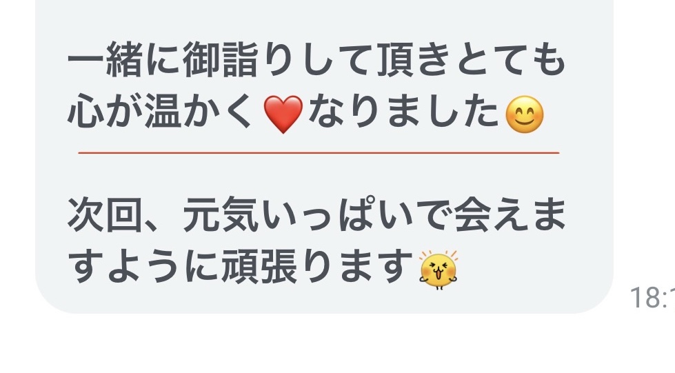 一緒にお詣りしたお客さまから、こんなLINEメッセージが届きました。